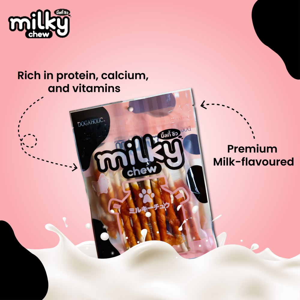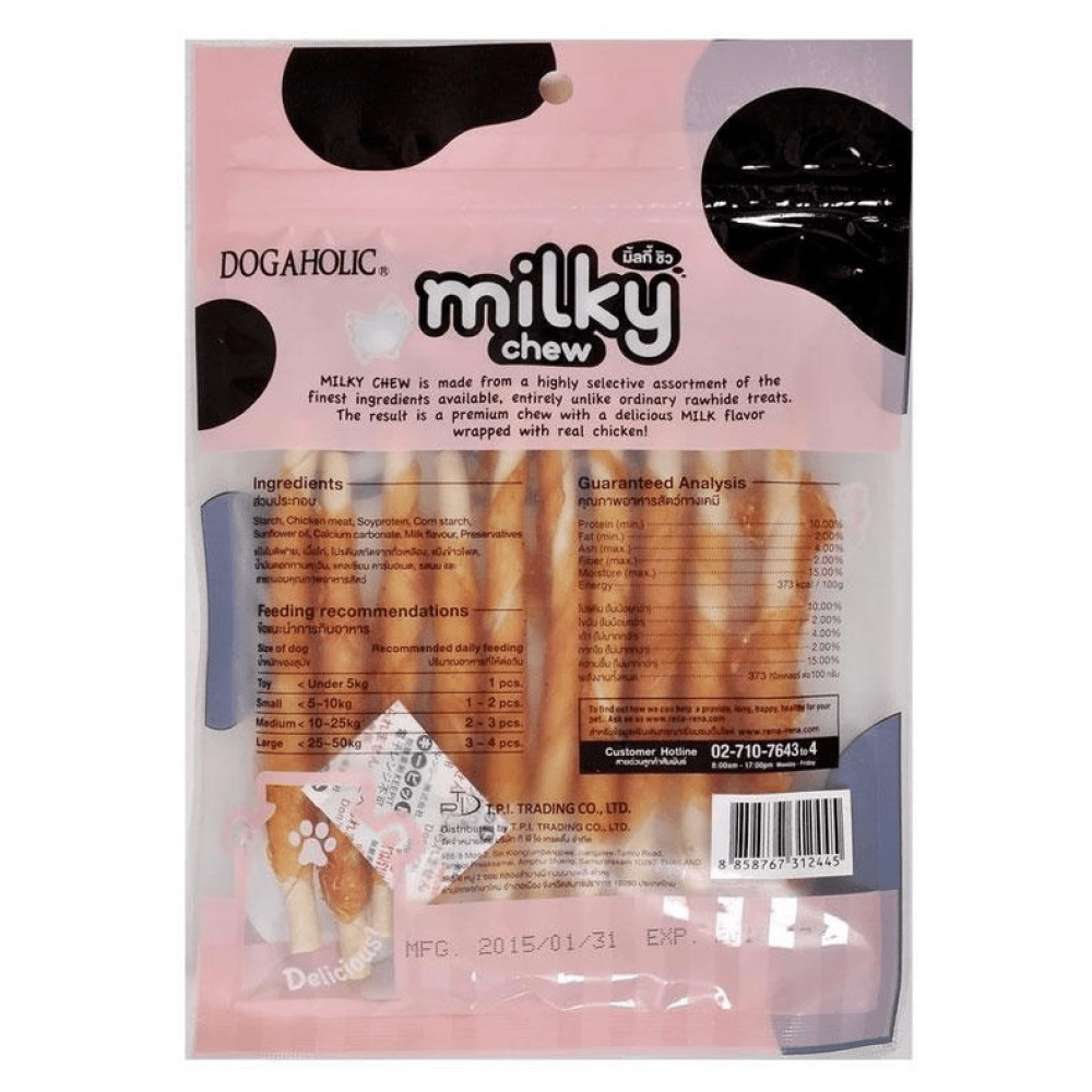 Dogaholic Milky Chew Chicken Stick Style Dog Treat is a delicious dog treat that tempts even the fussiest of dogs. This treat is specially designed to reduce dental problems like Tartar and Plaque build-up between your dog’s teeth and also to give them an energising breath. The treat is rich in protein and other essential nutrients that build strong muscles in your dogs and also strengthen their bones. Dogaholic Milky Chew Chicken Stick Style Dog Treat acts as a perfect training reward for your dogs and also serves as a delicious snack between their meals.