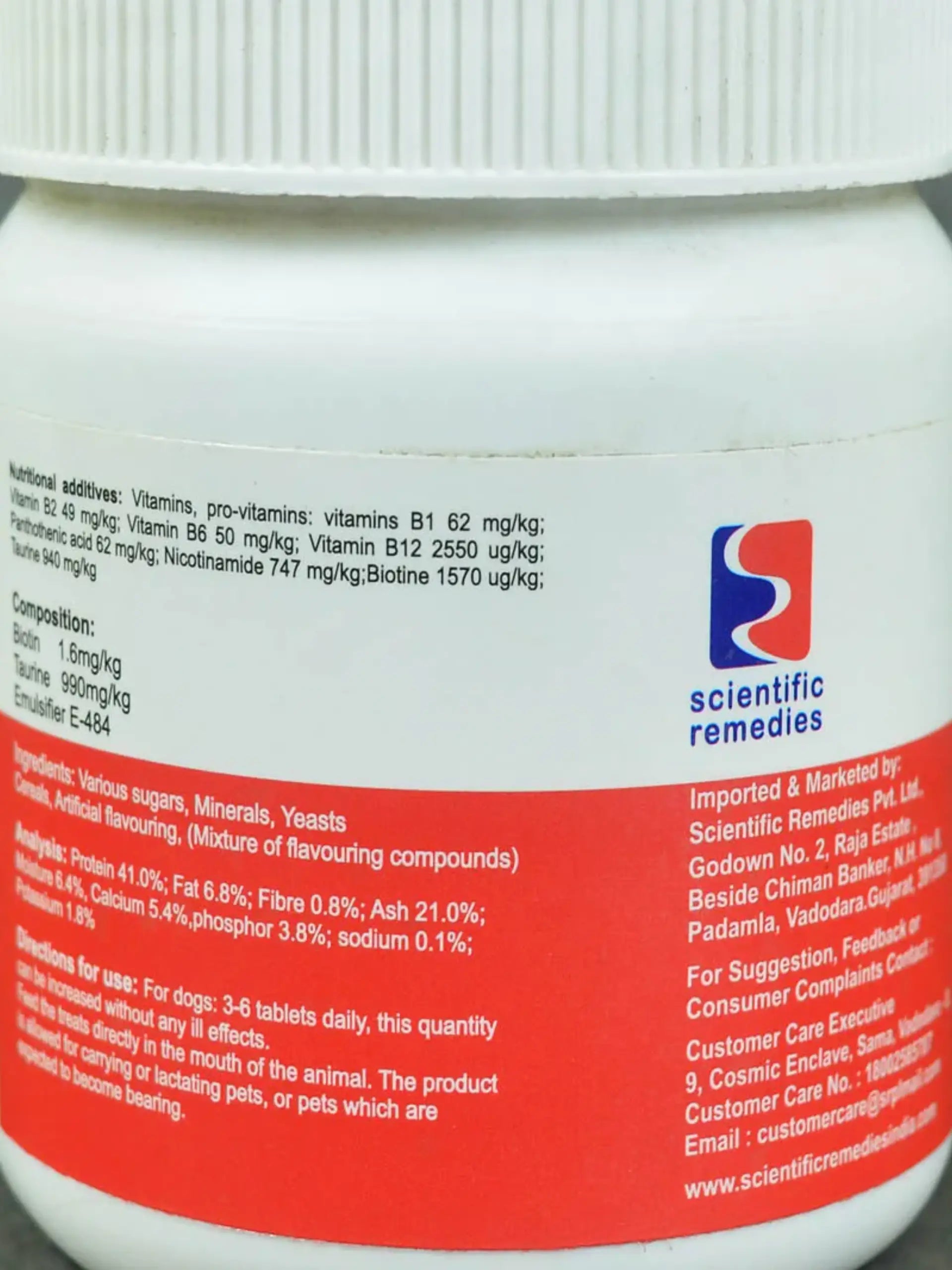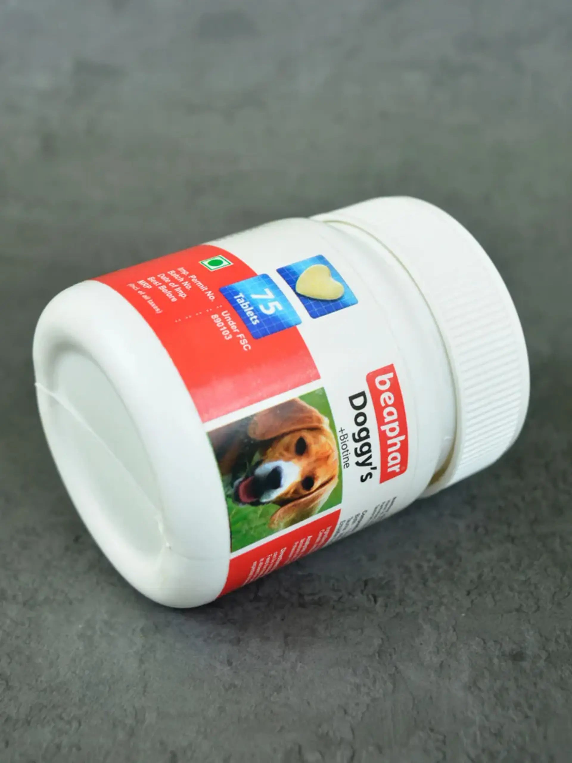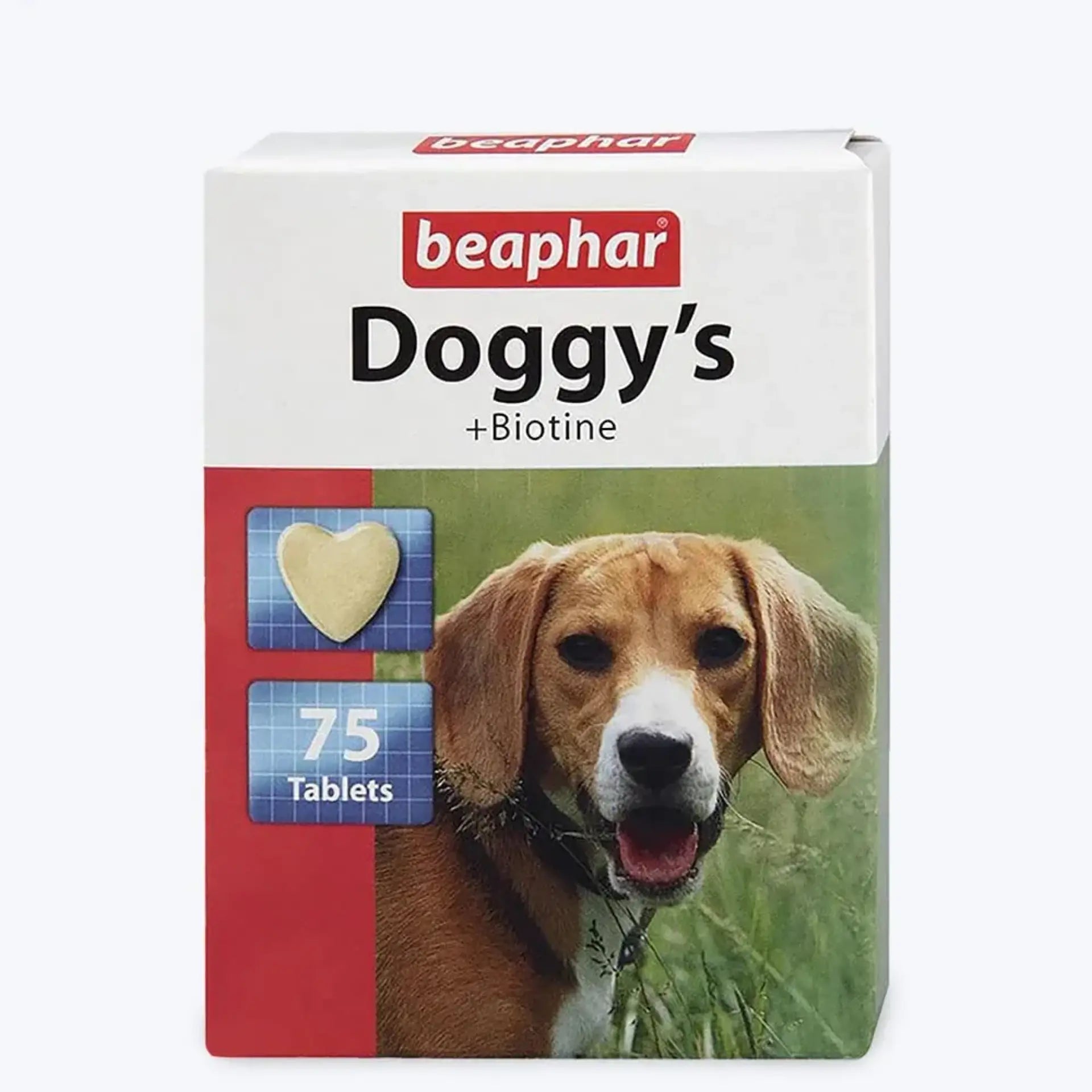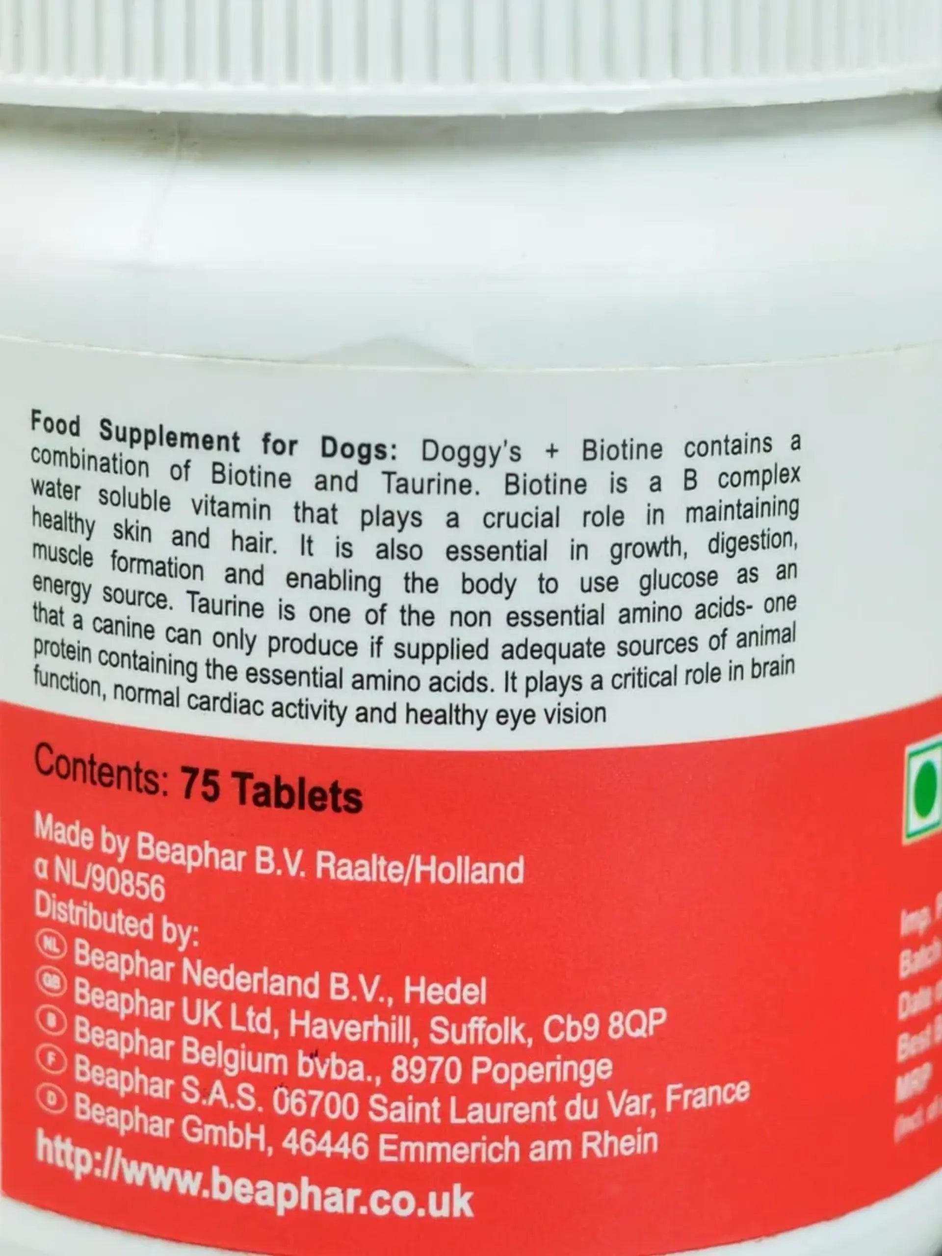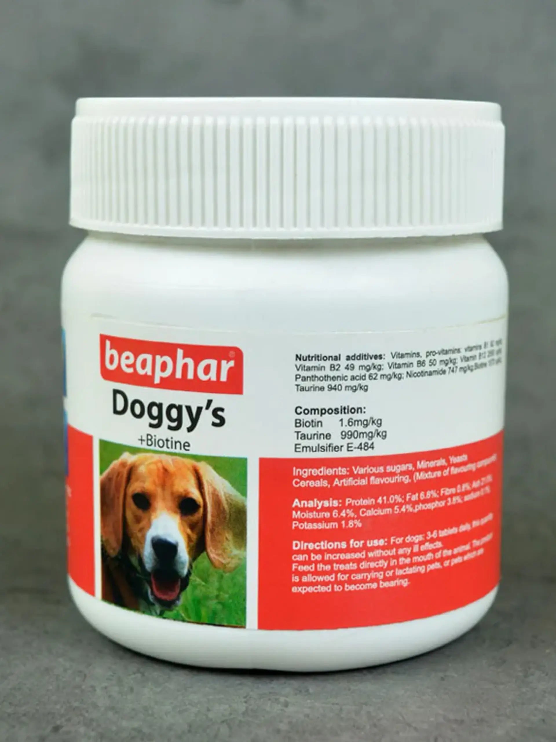 Doggy’s heart treats with biotine contain a lot of B-vitamin extract from yeast, vitamin C, E and a multi-mineral complex. The perfect reward for your dog.