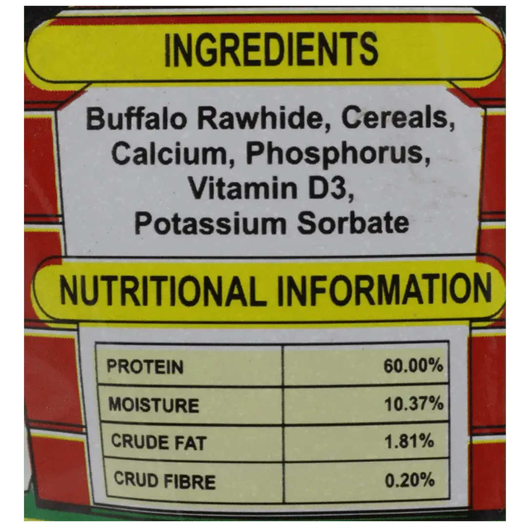 Choostix Calcium Plus Dog Treat 450 g is a nutritionally balanced dog treat having a rich calcium content for strengthening bones and teeth of the canine. Calcium also plays a vital role in blood coagulation and muscle contraction. A healthy combination of calcium and phosphorus reduces Plaque and Tartar Buildup. The treat satisfies the tendency of excessive chewing in dogs. They are stored in the jar for making them fresh and crunchy. Vitamin D3 present in the treat enhances the joint function in canines. Fortified with Vitamin B12, A and Iron, Choostix Calcium Plus Dog Treat helps in lowering the cholesterol levels also boosts the cardiac health. The distinct shape and size of the treat fulfil the natural chewing urge in dogs by thoroughly engaging them with the treat. It is suitable for all dog breeds.