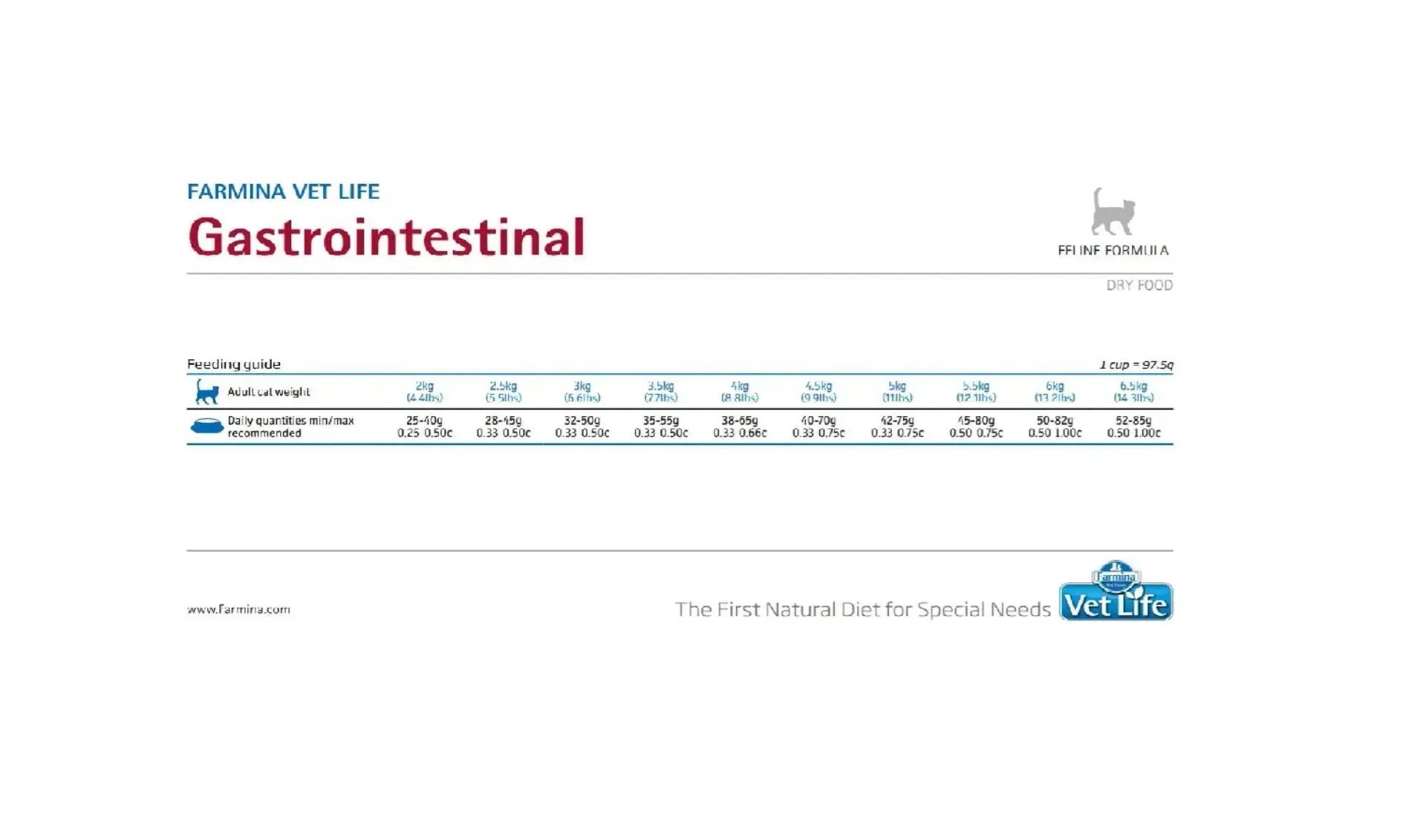 Farmina Vet Life Gastrointestinal is a complete dietetic food for dogs for the reduction of acute intestinal absorptive disorders, during periods of and recovery from acute diarrhoea, for the compensation for maldigestion and exocrine pancreatic insufficiency.