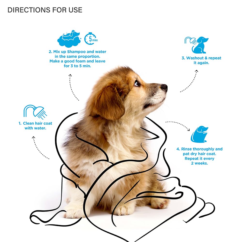 • Natural Conditioning Ingredients: Enriched with Aloe Vera and Soapberry Extract to nourish and hydrate the skin and fur, promoting a soft, shiny coat.