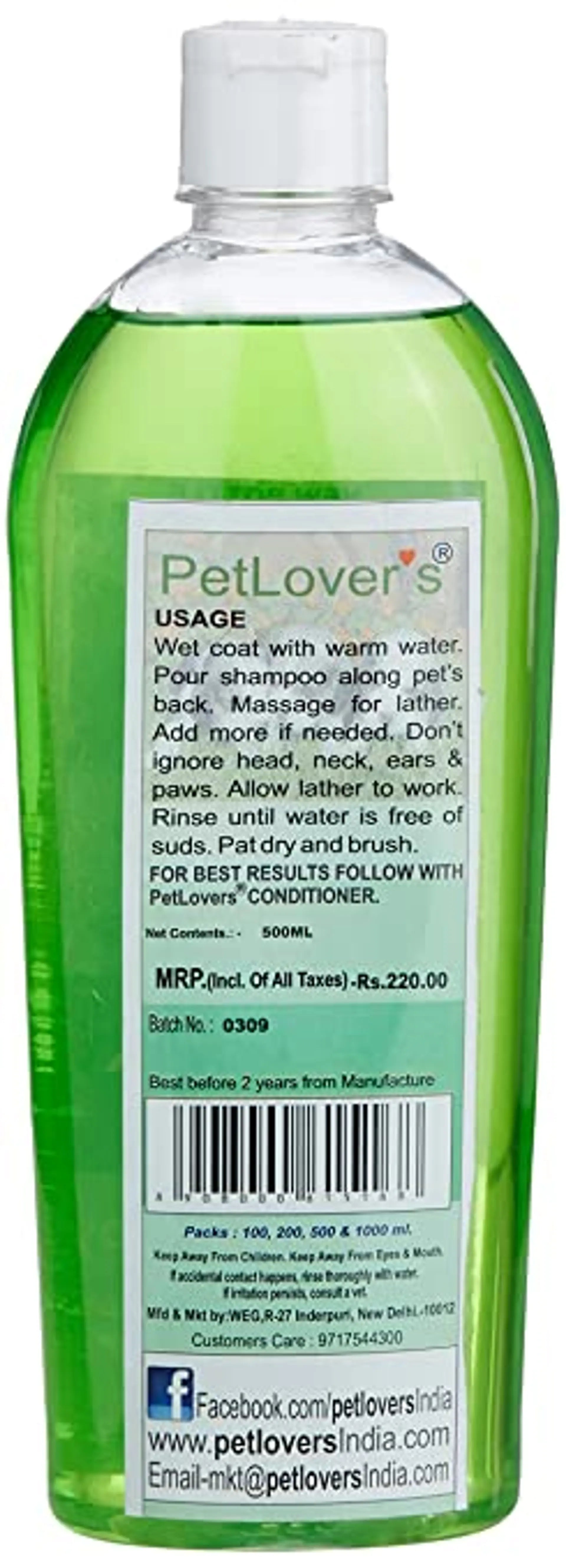 Pet Lovers Arnica Dog Shampoo is a high-grade dog shampoo that fortifies the skin health of dogs all breeds. It also prevents the problem of hair fall and increases the luster of their coat. The shampoo has antiseptic properties that support faster healing of wounds if your dog is recovering from minor cuts. Your dog will smell good by virtue of this shampoo’s excellent fragrance. The tearless formula of Pet Lovers Arnica Dog Shampoo ensures that your pet is going to absolutely love his next bath with this shampoo.
