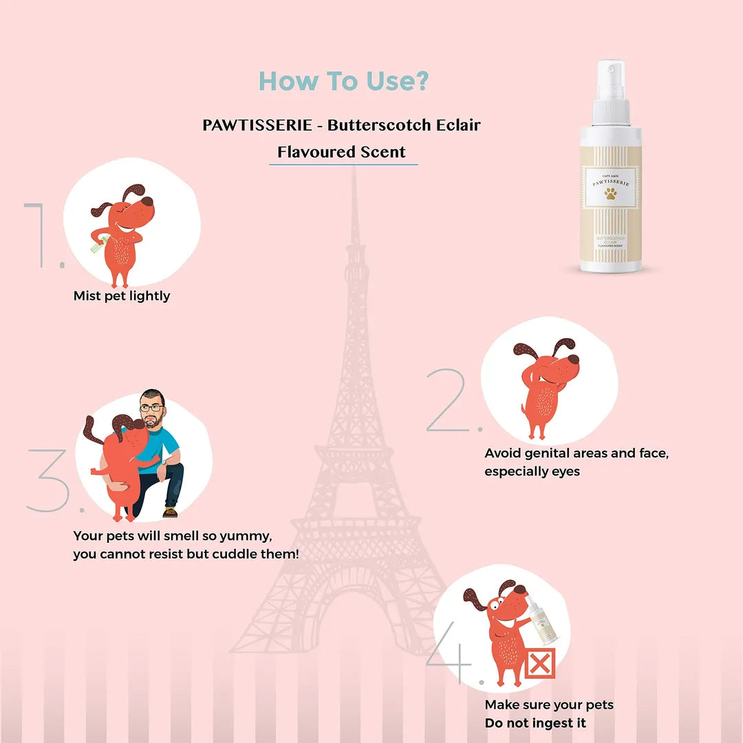 Inspired by delicious flaky eclairs filled with butterscotch pastry cream, this fragrance will earn your dog a spot in the window of a French patisserie. It’s also got aloe vera extract and Vitamin E for added oh là là. Safe for Dogs & Cats.