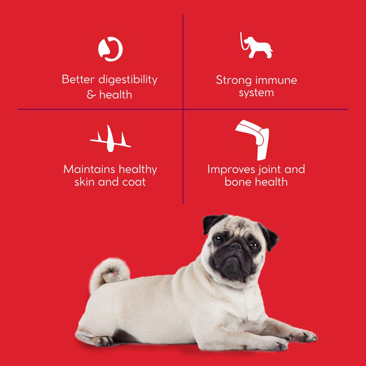 Drools Adult Small Breed offer high-quality nutrients, essential vitamins and minerals specifically catering to the health needs of a small breed adult dog. A fat content of about 12% consists of sufficient energy, which is required for small breed’s small-size stomachs and higher metabolisms. The small breeds, in general, live longer than large breed dogs. Thus, the pet food has carefully selected antioxidants to boost the defence mechanism, so that it can support the dog in carrying out a healthy and extended lifestyle. Natural prebiotics present in the food helps in boosting the digestive mechanism. Giving the digestive system further benefits are the vegetable fibres, which encourages good assimilation of the food for higher nutrient absorption. Consequently, there will be A relatively lesser quantity of stool. Drools dog food offers balanced nutrition and goes through stringent quality checks to give your dog a healthy and nourishing meal.
