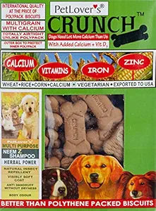 Pet Lovers Crunch Vegetable Biscuits are ideal treats for all dog breeds that helps in encouraging excellent chewing behavior in them. They are fortified with natural vitamins for boosting strength as well as immunity in your dogs. The unique texture of this treat helps to clear out the build-up of plaque between the dog’s teeth. This treat also removes the bad mouth odour that your dog is dealing with. Pet Lovers Crunch Vegetable Biscuits ensures that your puppies stay happy with this delicious treat whenever you are out of the house.