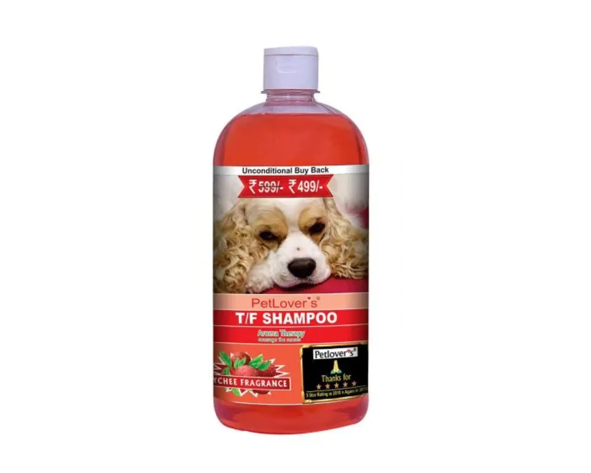 Pet Lovers True Fragrance (T/F) Shampoo is a premium branded dog shampoo that is used as aromatherapy for the dogs. This shampoo gives them a soothing effect that calms them down. The extraordinary fragrance it gives lasts in their coat for a long time. It has an extra-gentle composition that makes it ideal for frequent use. Pet Lovers T/F Shampoo offers excellent antiseptic properties to prevent infections and to assist faster healing of wounds. The shampoo also provides your dogs with anti-dandruff effects that get rid of the dry skin and flakes that cause dandruff. This is a skin-friendly shampoo having a balanced pH that suits all breeds of dogs.