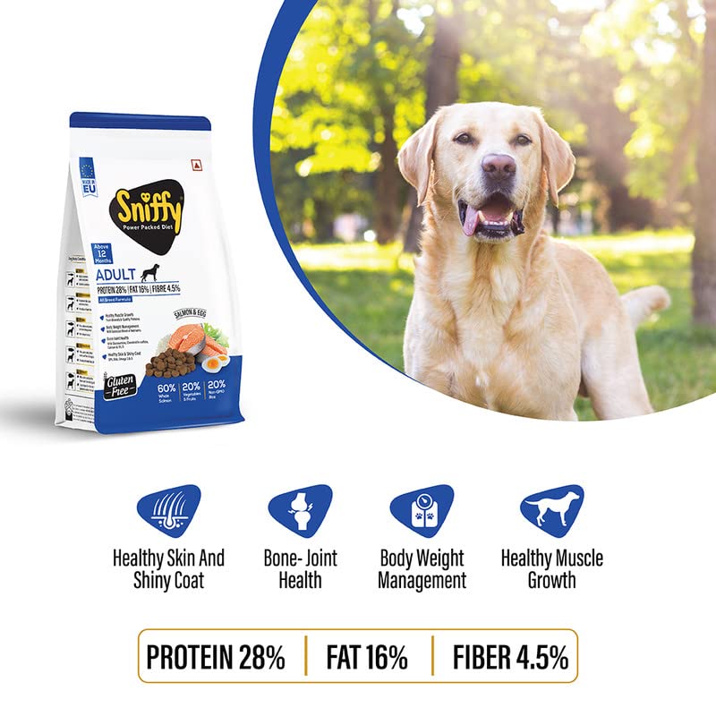 Sniffy Gluten Free Salmon & Egg Adult Dog Dry Food is specially designed for dogs with sensitive digestion. This high-quality, nutrient-rich food features premium ingredients like salmon and eggs, providing essential nutrients for your dog’s overall health and well-being. Moreover, it’s perfect for maintaining a balanced diet and boosting vitality.