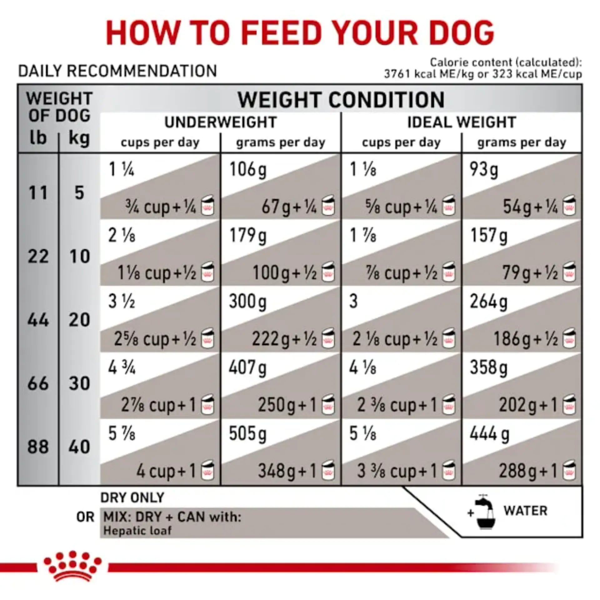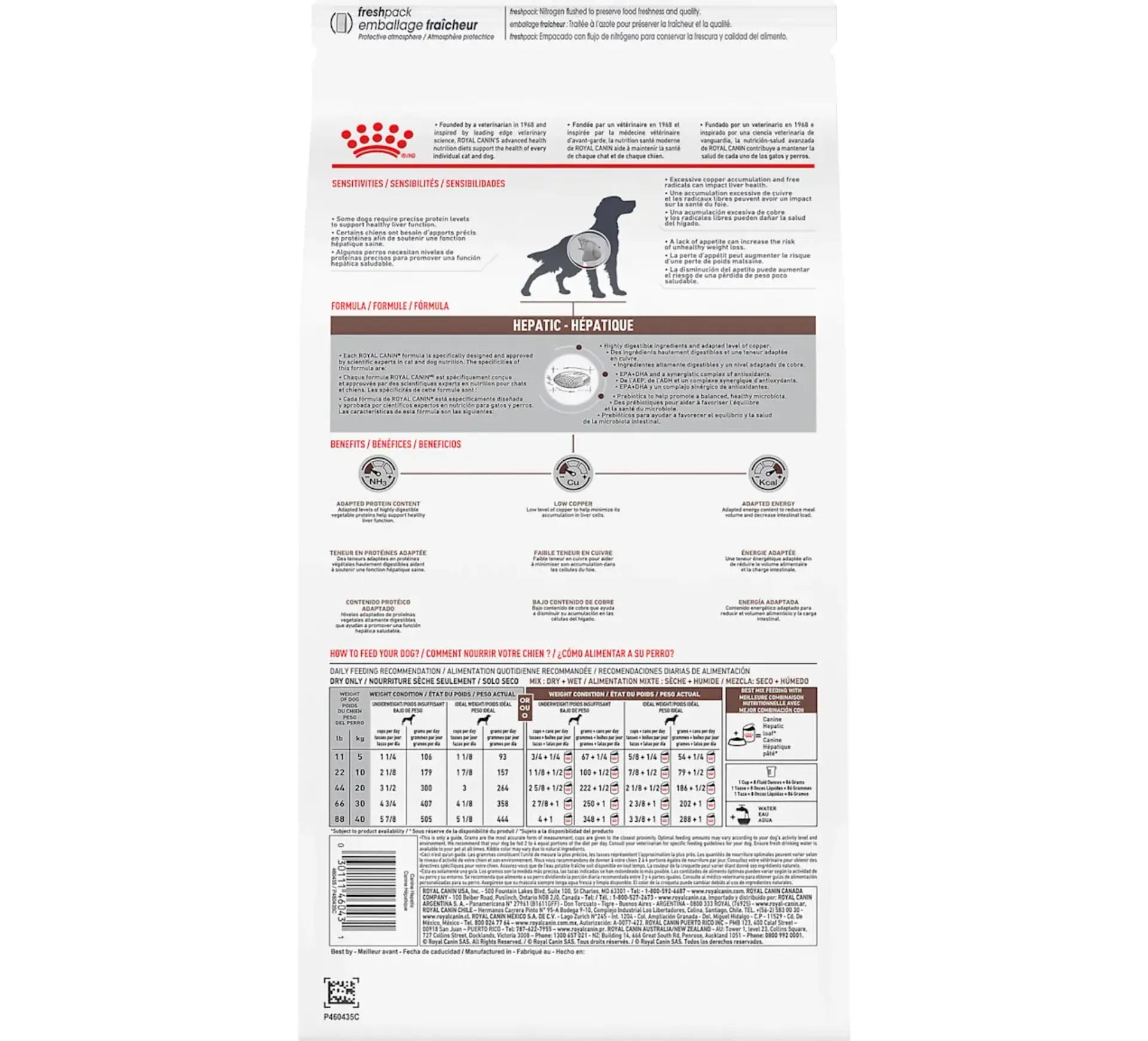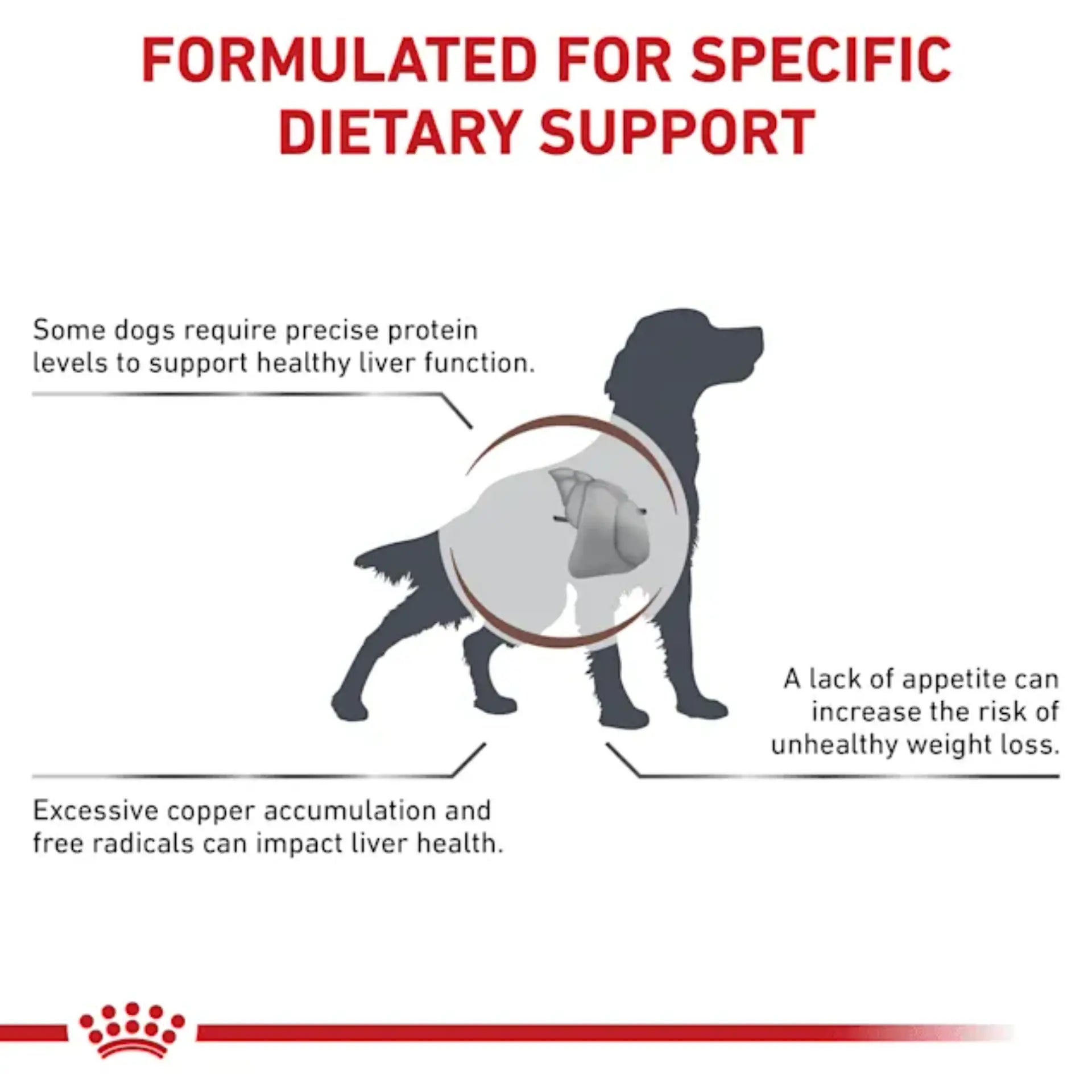 Royal Canin Veterinary Diet Dry Hepatic Dog Food is a complete diet for adult dogs that supports liver function in dogs experiencing chronic liver insufficiency. It is also a dry dog food that can be used for other illnesses such as chronic hepatitis, hepatic encephalopathy, and piroplasmosis. This veterinary food consists of plant proteins, reduced copper content, and an increased zinc content that helps limit copper retention in liver cells. Royal Canin Veterinary Diet Dry Hepatic Dog Food also contains a special antioxidant combination that offers your dog protection against attacks by aggressive metabolic entities.