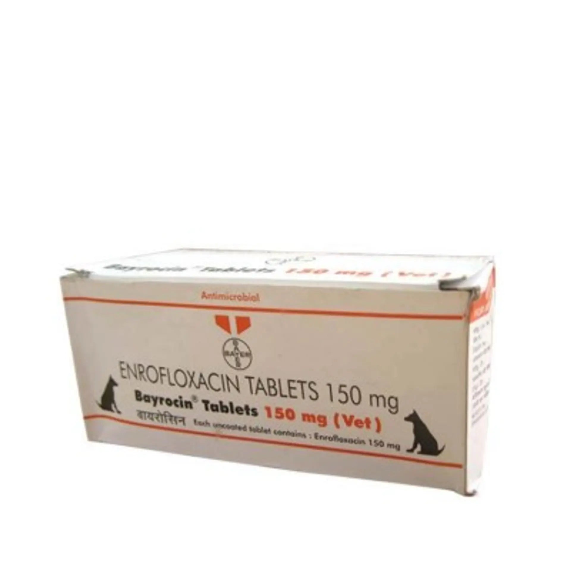 Bayer Barocin Tablet is an antibiotic medication used to treat bacterial infections in pets. It is applicable for a wide range of animals like dogs, cats, cattles, horses, goats, pigs, buffalo, bull, camel, sheep etc. This tablet is also useful for treating infections of the urinary tract, nose, throat, skin and soft tissues and lungs (pneumonia). It also prevents the bacterial cells from dividing and repairing, thereby killing them. Bayer Bayrocin is FDA Approved and ensures safety and efficacy in the animals.