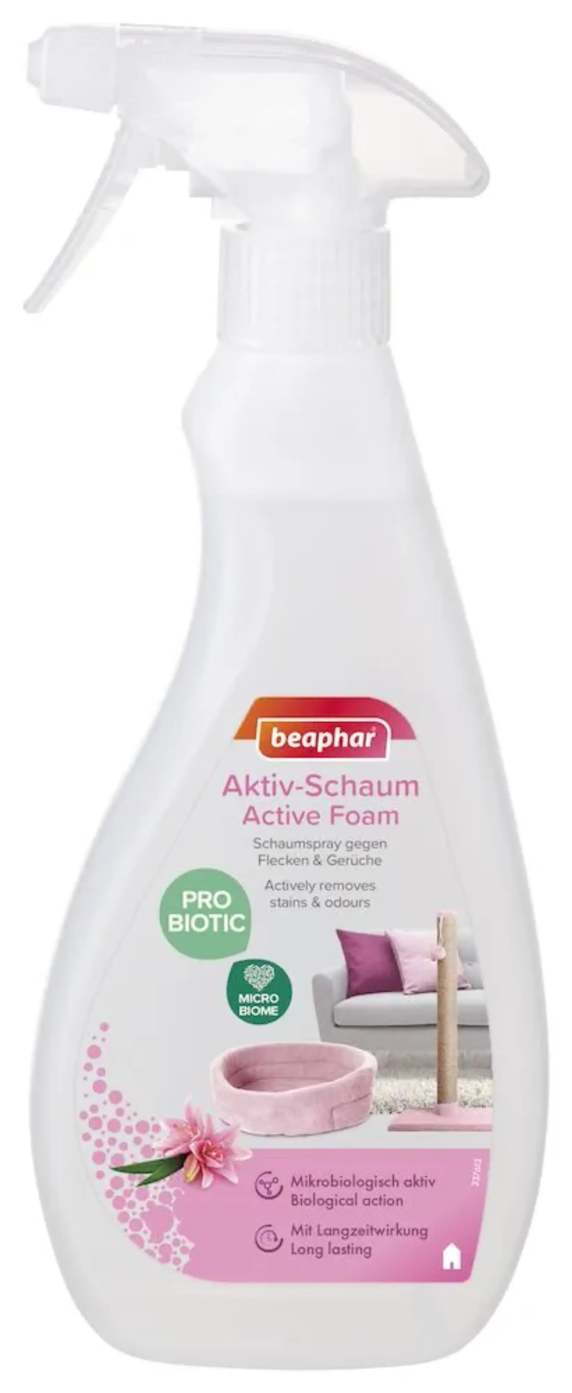 Beaphar Active Foam Probiotic Stain & Odor Remover for Pets is a 500 ml cleaning product that contains probiotics to break down and eliminate stains and odors caused by pets. It requires no rinsing and is safe on various surfaces, including carpets, upholstery, and bedding. Beaphar Active Foam Probiotic Stain & Odor Remover for Pets is safe to use around children and other pets.
