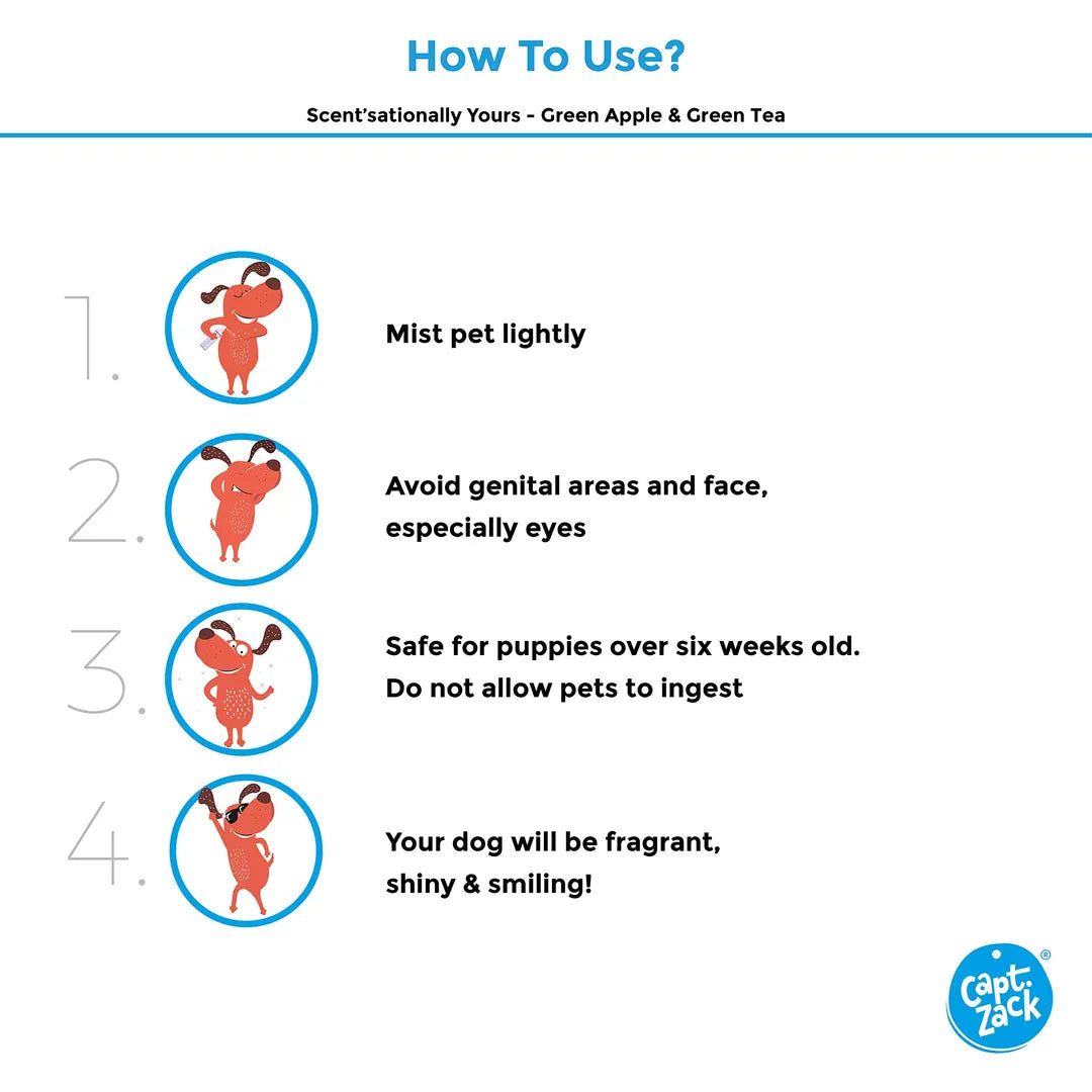 Spritz your pet with the soothing and fresh blend of Apple & Green Tea. The Captain Zack Scent’sationally Yours Cologne Spray will make your pets smell as great as they look. Infused with Apple and Green Tea Extracts, it is nourishing and instantly helps control odour. Better yet, it is really gentle and alcohol-free to prevent skin irritation. Simply spray it on and your pet is ready to be super social!