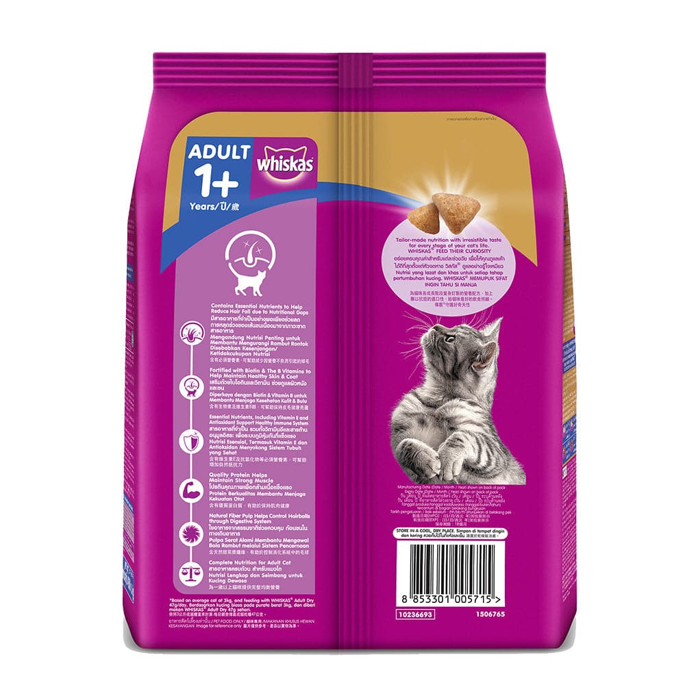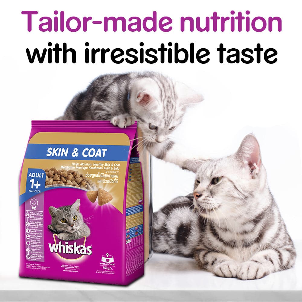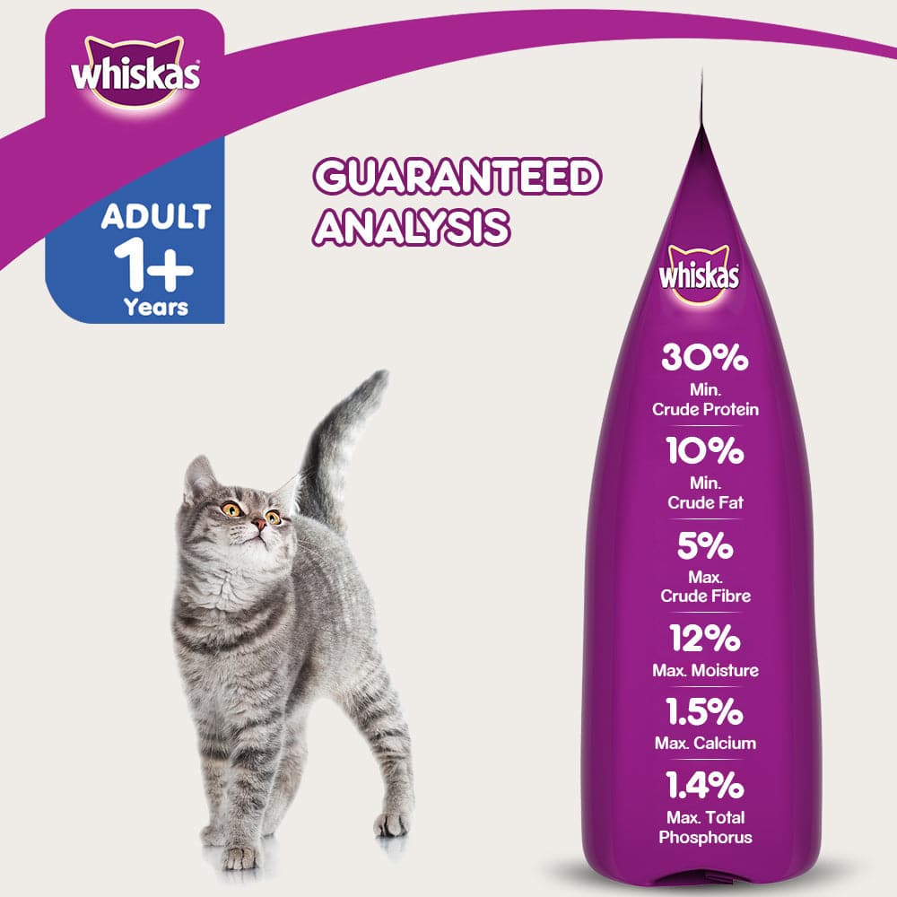 Whiskas Dry Cat Food For Healthy Skin & Coat is a wholesome diet suitable for all breeds of cats. This diet consists of vital nutrients that bolster the skin health of the cats. For eg, this cat food contains Biotin & Vitamin B that keep up healthy hair and coat in the felines. Also, the diet offers some good natural fibre content that assists healthy digestion and good assimilation of nutrients as well. Fibres also play a vital role in eliminating the formation of hairballs in cats, which often triggers vomiting and gagging in them. An adequate amount of fats in the diet keeps your felines energetic and meets their high-energy needs as well. Whiskas Dry Cat Food For Healthy Skin & Coat contains Vitamin E as a natural antioxidant that keeps up a healthy immunity in cats.
