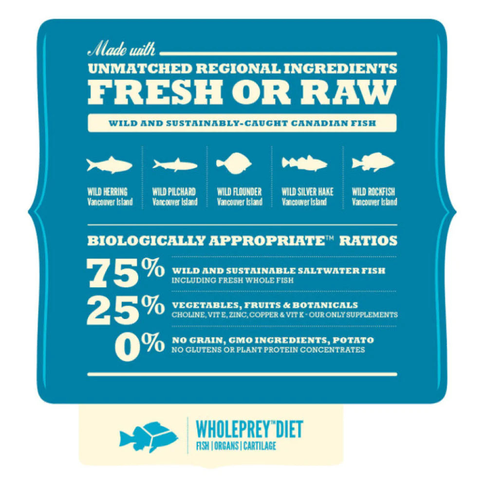 Acana Cat Pacifica Food is a highly nutritive cat food containing all the necessary vitamins and minerals to support proper health and wellbeing in felines of all breeds and life stages. The food contains Pacific Herring, flounder, pilchard, rockfish and hake from sustainable fisheries supplying 5 sources of healthy protein for maintaining good muscle mass and strength. A healthy blend of vegetables, fruits and botanicals give sufficient nutrition for boosting overall metabolism in cats. Acana Pacifica Cat Food is low in carbohydrate to counter diabetes and obesity. Zinc along with essential fatty acids like Omega 3 and Omega 6 promote skin health and give a radiant coat. It also offers a WholePrey formula for replicating the felines natural diet in the wild. Acana Cat Food contains no synthetic additives and is completely a gluten and grain free meal for helping allergic dogs too.