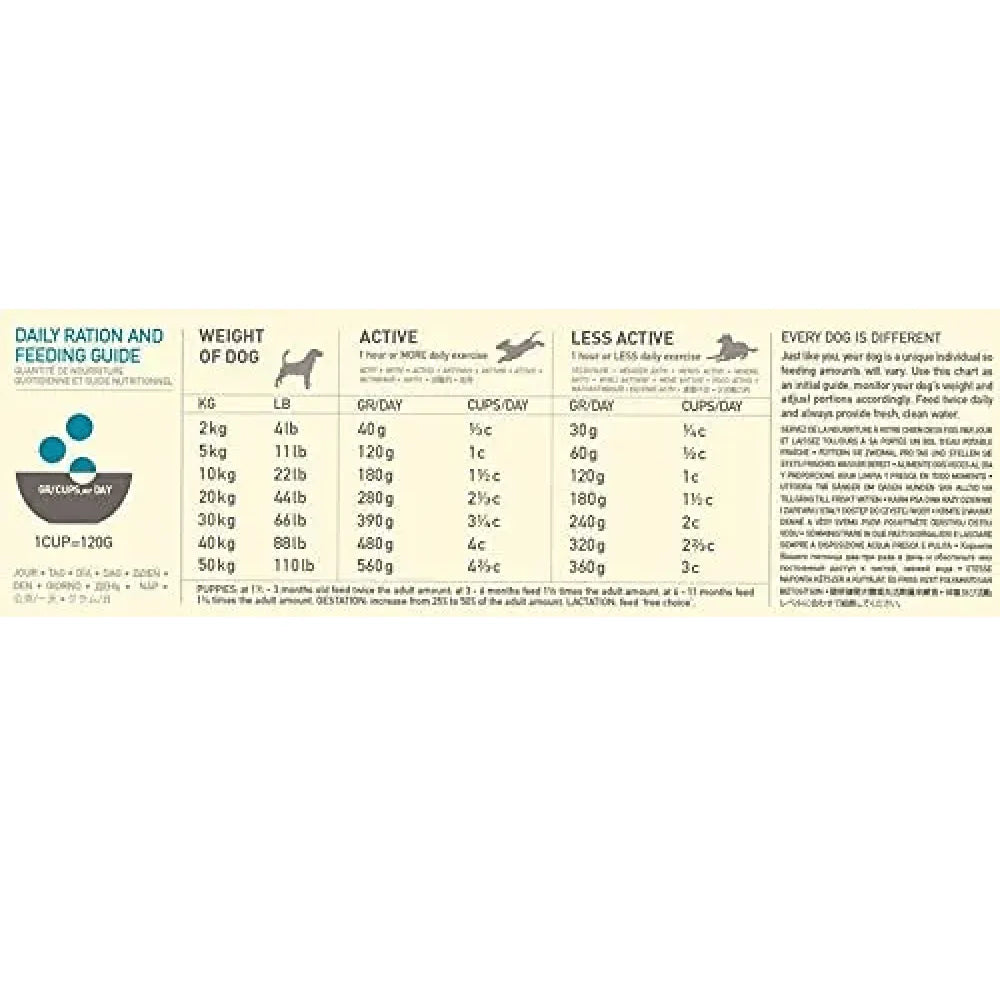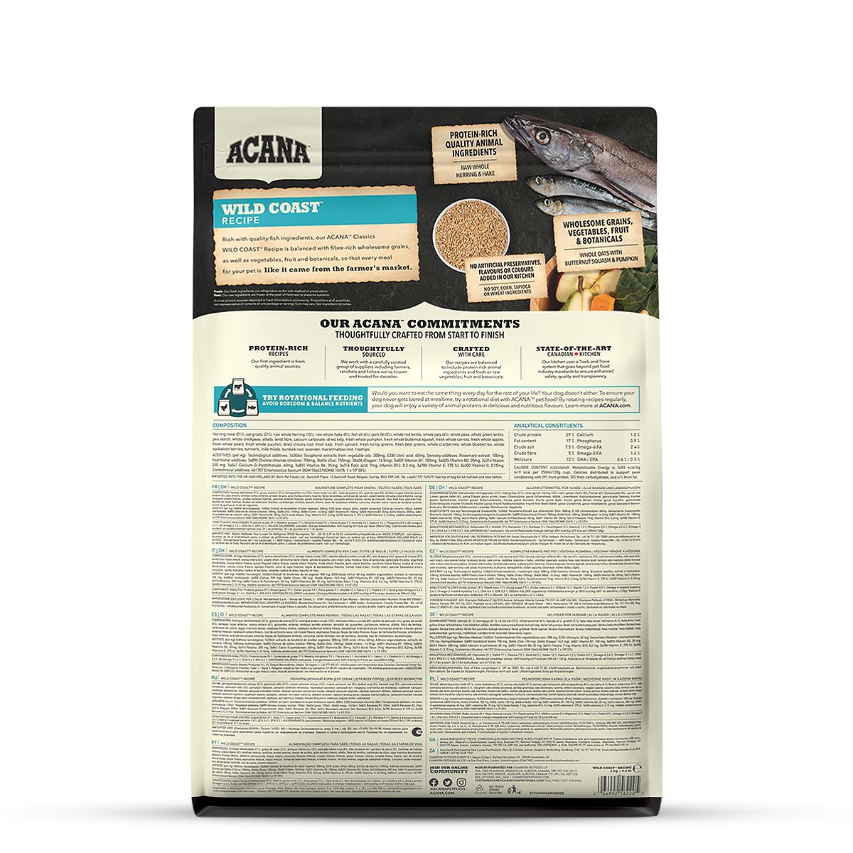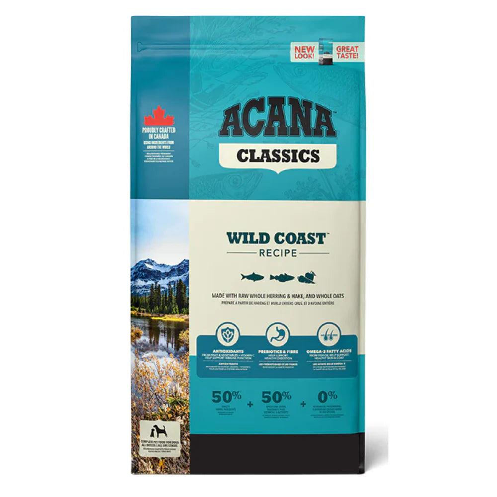 Dogs are fundamentally carnivorous creatures and like their ancestors, they too biologically thrive on a diet containing varied meat and fish supplemented with vegetables, fruits and grasses. Acana Classic Wild Coast Dog Food 340 grams is a complete dog food made with wild-caught fishes like Pacific herring, arrowtooth flounder and Silver hake giving high-quality nutrition to canines to maintain overall health and wellbeing. The diet contains a rich quantity of protein for building lean muscle mass and enhancing skin and hair growth. Acana Wild Coast consists of essential fatty acids like Omega 3 and Omega 6 for promoting healthy skin and giving a radiant coat. Being a 0% glycemic grain content dog food, the meal sustains a stable blood sugar level and also helps in preventing obesity. With the mixture of freeze-dried-herring, Acana Classic fish food makes it highly palatable for dogs to savour. It is a biologically appropriate food that is suitable for canines of all breeds and life stages. Acana Dog food provides a richly nourishing mixture of fish, organs and cartilage which deliver the nutrients your fido needs naturally without a long list of synthetic additives.