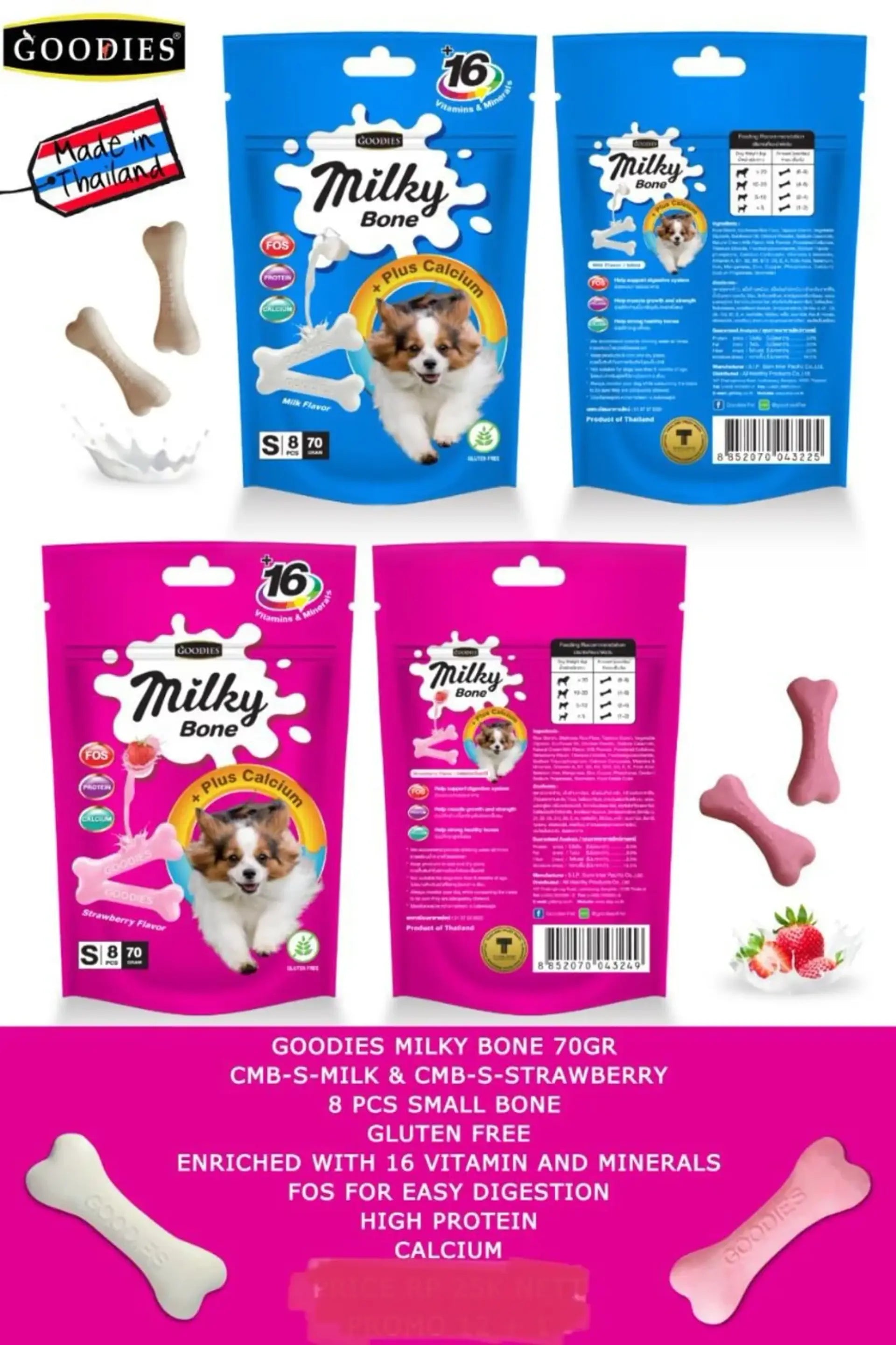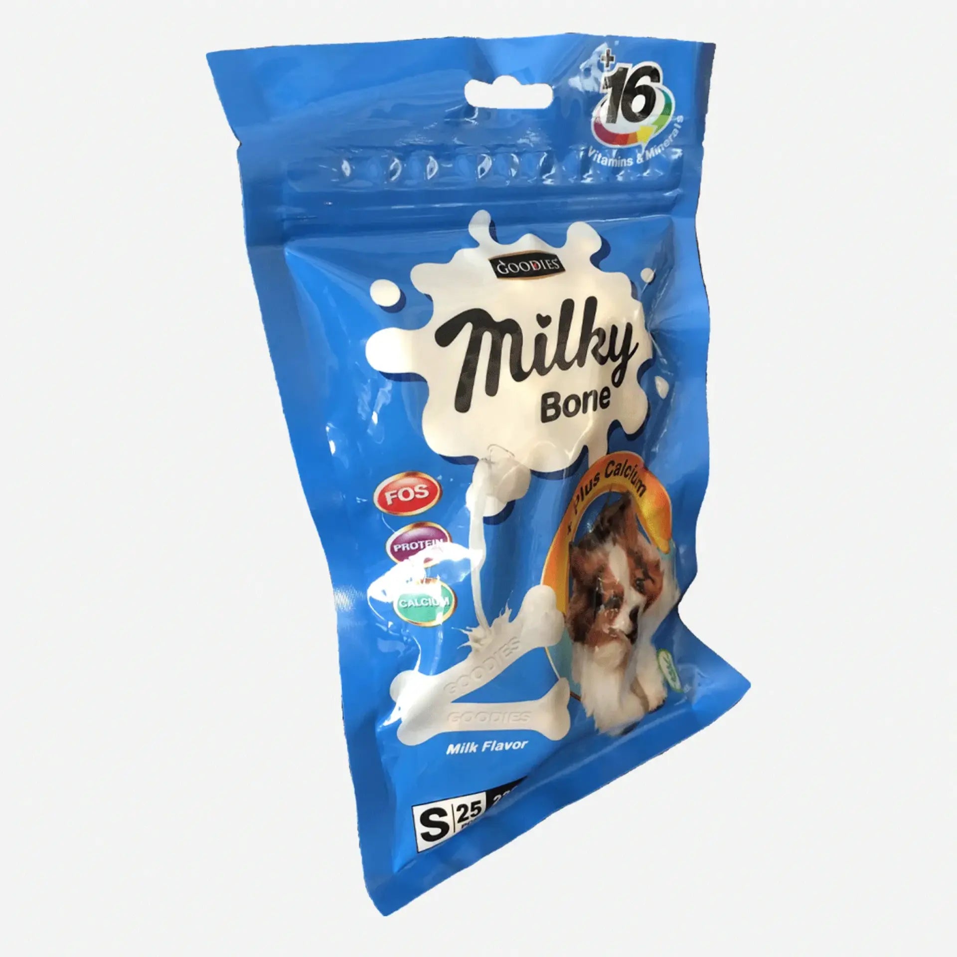 Goodies Milky Bone Calcium Plus is a fitting dog treat for all dog breeds that give them an appetizing milk flavour. This treat is fortified with calcium for maintaining robust bones and teeth in your dogs. It has a substantial amount of protein that promotes excellent muscle mass and strength in them. Goodies Milky Bone Calcium is also filled with natural fibres that encourage a healthy digestive mechanism. All in all, it acts as a wonderful snack for your dog that fulfils their chewing urge too.