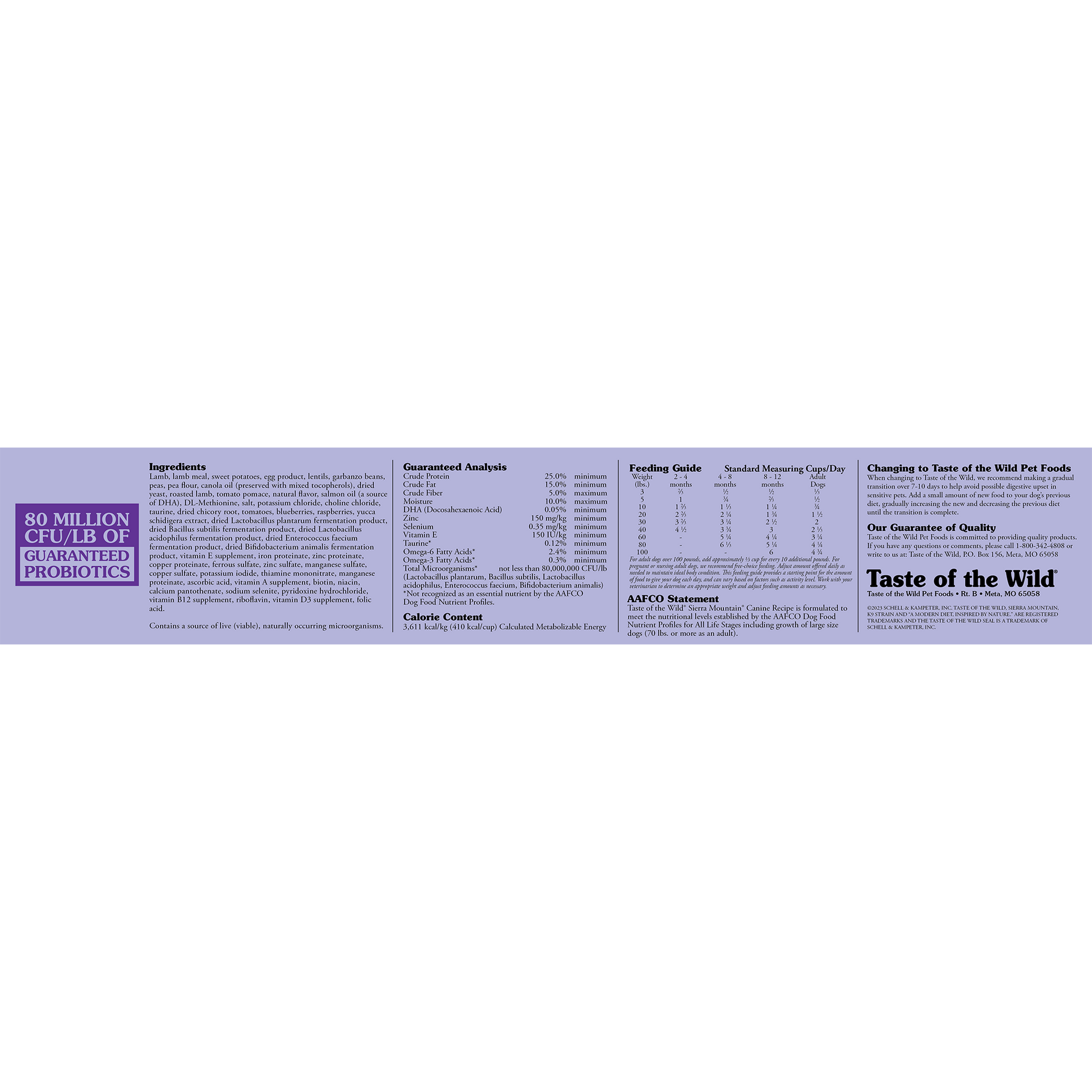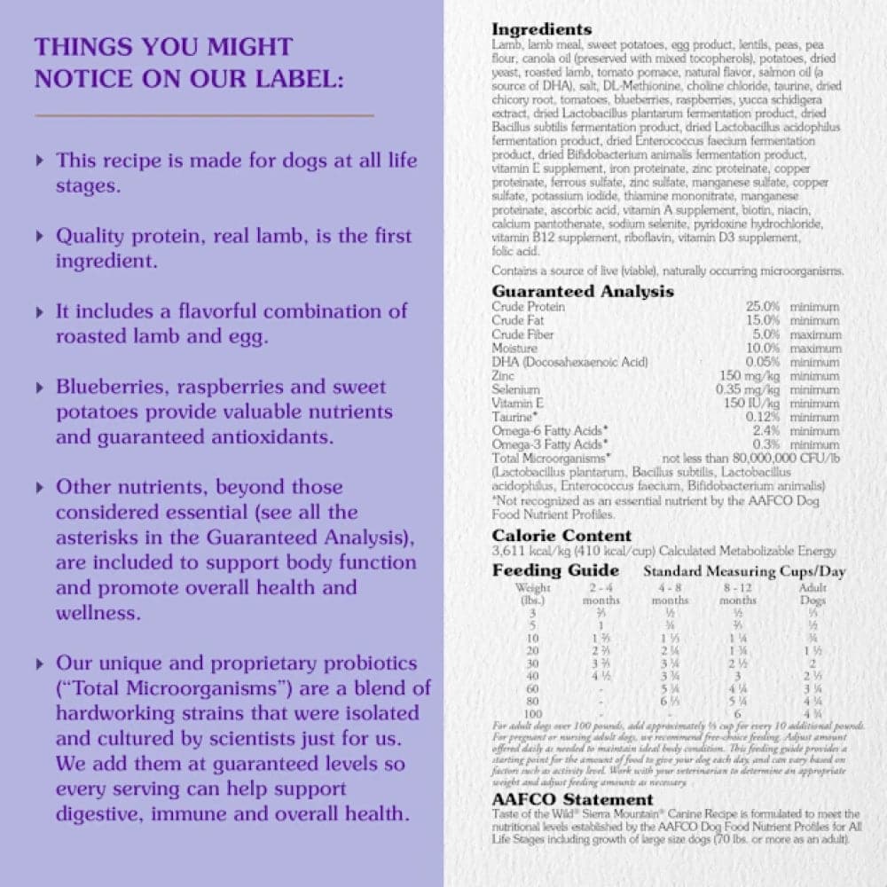 Taste Of The Wild Sierra Mountain Roasted Lamb 2 Kg is a highly nutritious dog food ideal for puppies and adult dogs of all breeds. Lamb is the major constituent of the diet, that provides a protein content of 25%, keeping your beloved canines healthy and strong. Salmon fish oil is an excellent source of Omega fatty acids, that keep the skin and coat healthy and shiny. Important vitamins and other minerals in the diet, maintain strong bones and teeth in the puppies. The powerful antioxidants obtained from the vegetables and fruits promote longevity and provide your adult dogs with a strong immune system. The dried chicory root present in the food gives your dogs excellent prebiotic fibres, that boosts their digestive mechanism. Taste Of The Wild Sierra Mountain Roasted Lamb is completely grain free, making it appropriate for dogs with food allergies or intolerances.