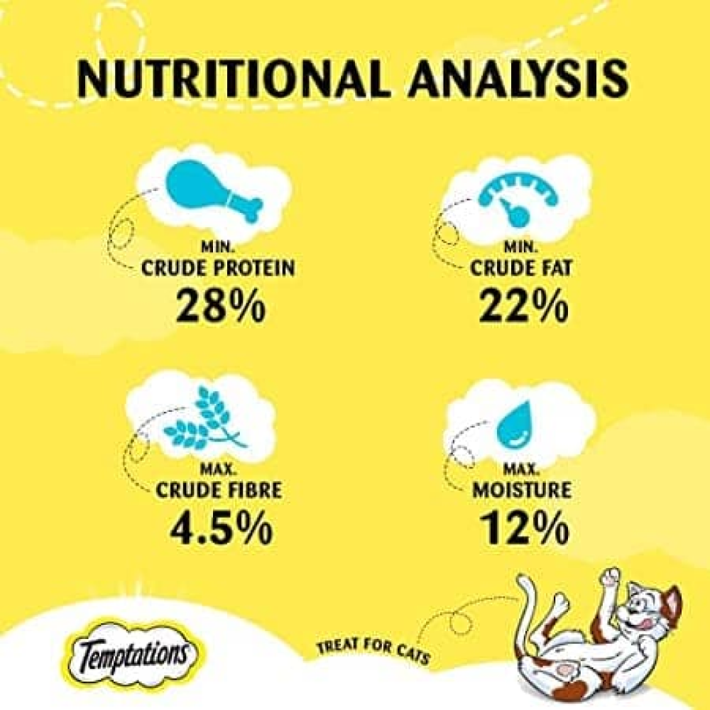 Temptations Cat Treat Tuna Flavour is one of the best yummy cat treats available at PetsWorld, offering a delectable flavour of tuna fish. It has got all the essential vitamins and minerals that keeps a healthy metabolism in the felines. Taurine has also been added in the diet for boosting the cardiac health of the cats. Moreover, this treat offers only 2 calories per piece for maintaining a healthy blood sugar level in the cats. Get Temptations Cat Treat Tuna Flavour at PetsWorld and give your lovely cats a fantastic treat to cherish.